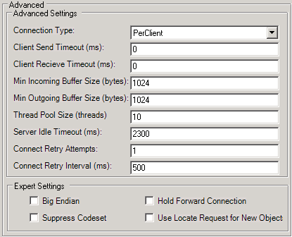 The Advanced CORBA settings menu allows users to further fine tune details about the Espresso runtime: