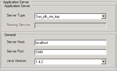 - Server Type: Specifies the type of application server to be used, which affect the default values used by Espresso. Valid values include: Weblogic, Websphere, JBoss, sun_jdk_rmi_iiop (Sun's default RMI implementation), and Custom.