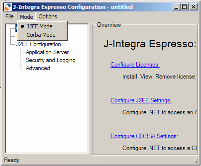 Select the Configuration Mode (J2EE or CORBA)